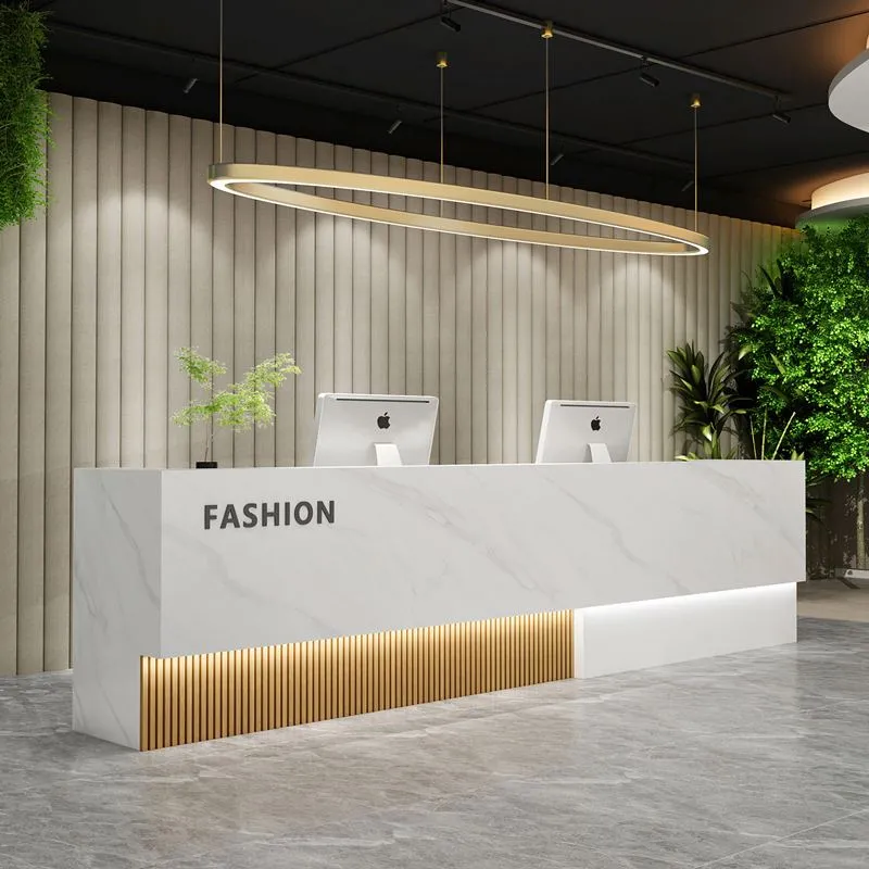 - Kim Loại: Vật liệu này mang đến sự bền bỉ và khả năng chịu lực tốt, thích hợp với các quầy lễ tân có thiết kế hiện đại.