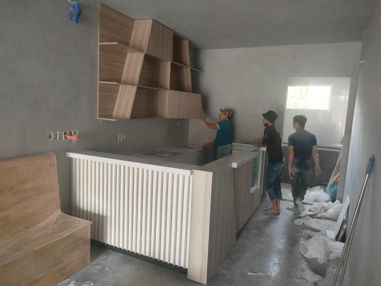 - Thi công: Đội ngũ thi công sẽ tiến hành lắp ráp quầy pha chế theo bản thiết kế đã được phê duyệt.