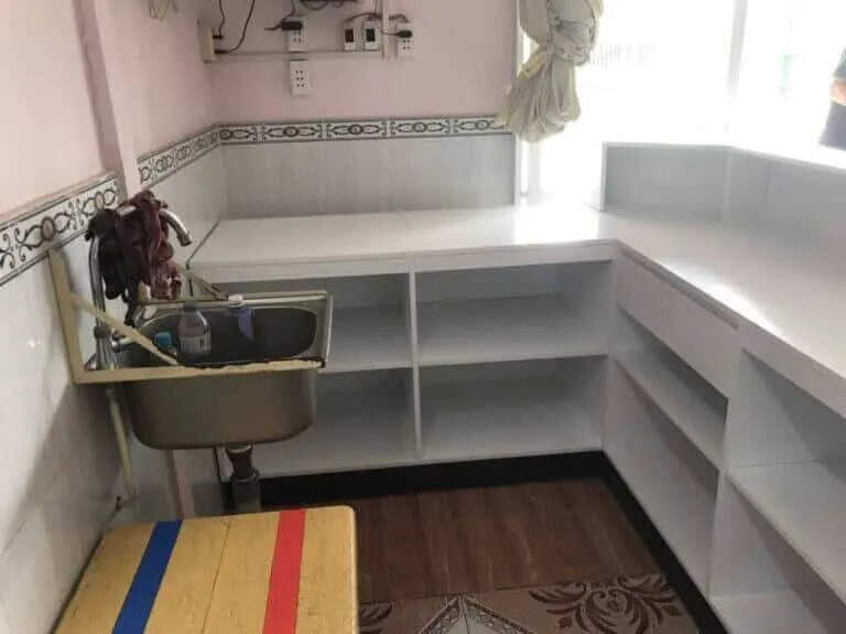 – **Laminate**: Có nhiều màu sắc và kiểu dáng đa dạng, dễ dàng vệ sinh và bảo trì.