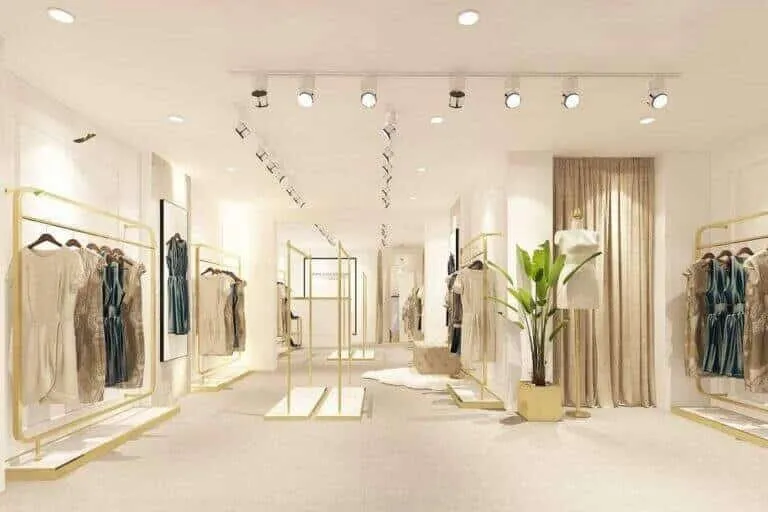3. Thiết kế ánh sáng và giá treo đồ trong shop thời trang giá rẻ
