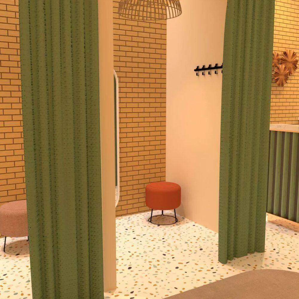 Ngoài ra cần có phòng thử đồ có cửa, đèn và gương để khách có thể thử đồ, tuỳ hình thức kinh doanh mà bố trí phòng thử đồ khác nhau, các trường hợp đơn giản shop nhỏ ít không gian thì có thể làm các vòm thử đồ với khung và rèm vải là có thể có khu vực để thử đồ, cần lưu ý bên trong nên có gương và đủ ánh sáng.